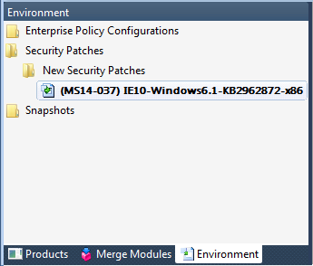 On the Home tab, open the Environment tree and select either the Security Patches group or one of its subgroups.