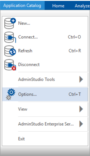 1. In the Application Catalog tab, select Options. The Options dialog box opens. ![](/images/Application Catalog_select options_1.png)