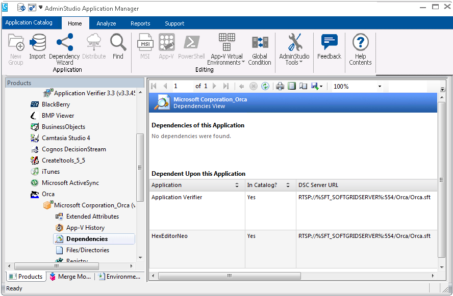 - In the tree, expand an App-V package and select the Dependencies node. The Dependencies View opens.