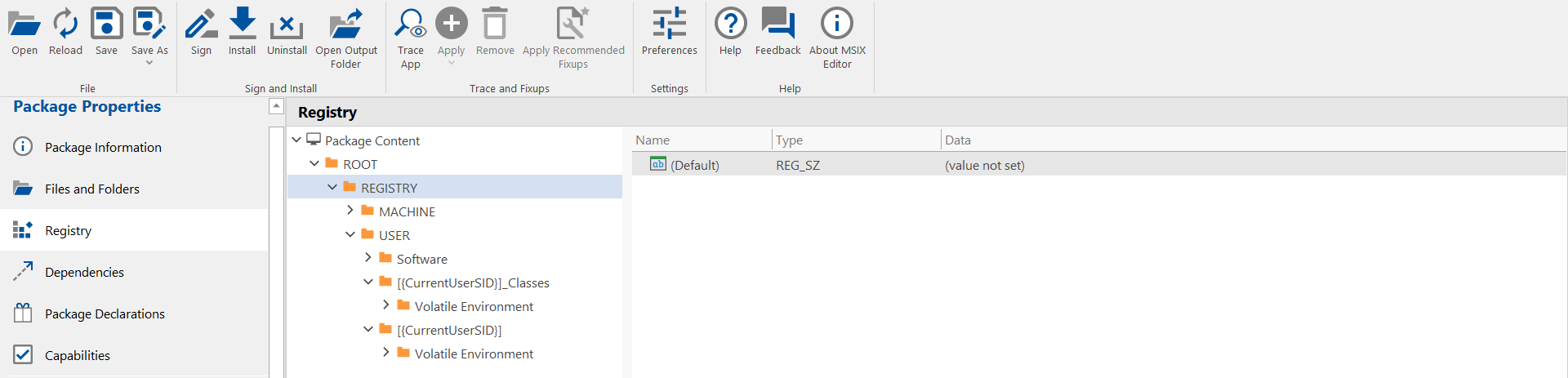 In the Registry pane, right-click on Package Content node, and then select Import REG file.